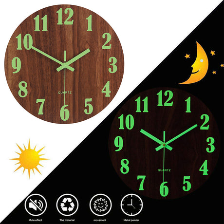30CM Luminous Wall Clock Glow In The Dark Silent Quartz