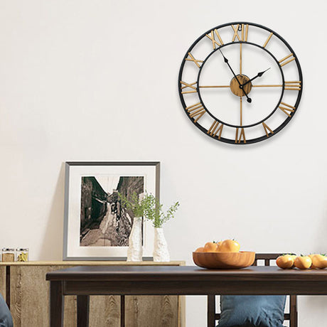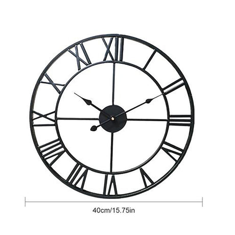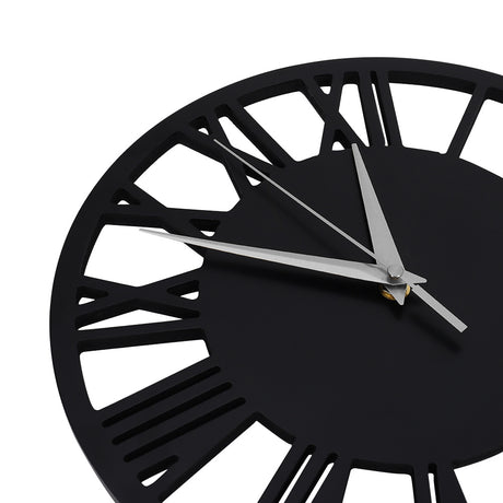 30CM Large Elegant Roman Numerals Open Round Wall Clock, Black and Silver