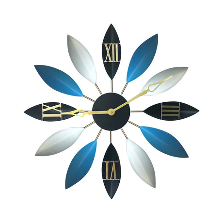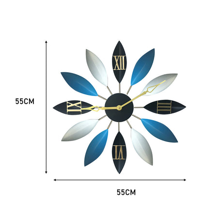 Large Vintage Flower Wall Clock Home Art Decor, Blue