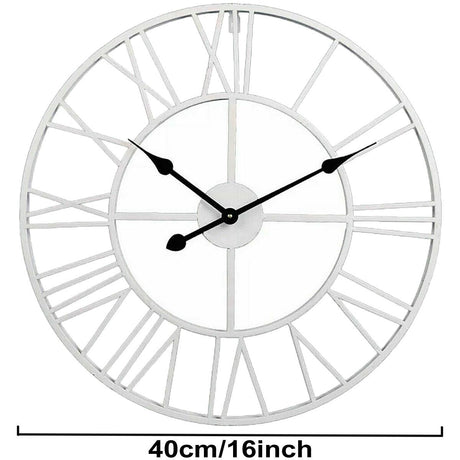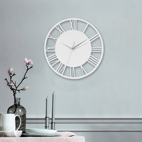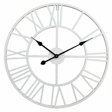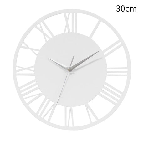 30CM Large Elegant Roman Numerals Open Round Wall Clock, White and Silver