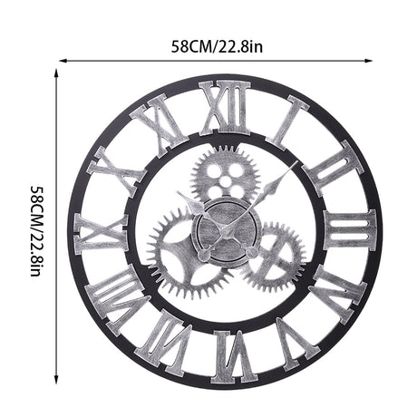 Silver 58cm Industrial Large Retro Silent Wall Clock