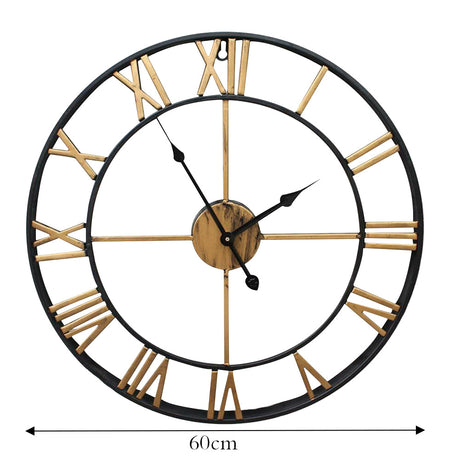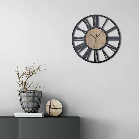 Metal Wood Decorative Wall Clock with Roman Numerals