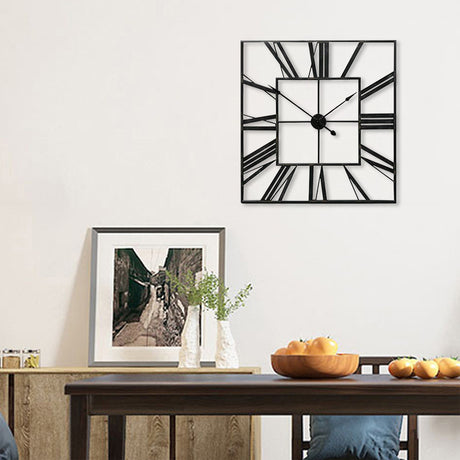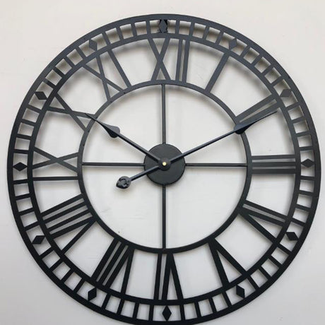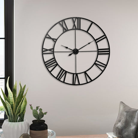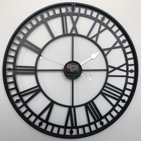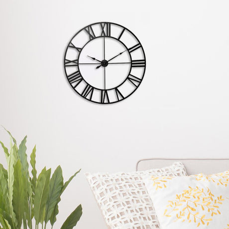 Roman Numerals Metal Skeleton Wall Clock, Black