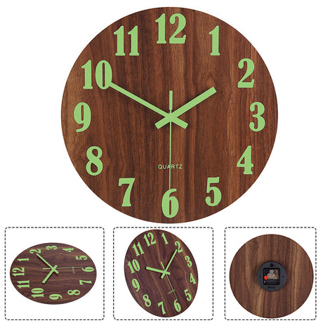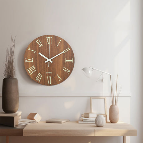 Modern Luminous Wood Silent Roman Numeral Wall Clock