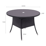 105CM Patio Garden Round Rattan Glass Table With Umbrella Hole Black
