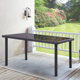 150CM Patio Garden Rectangle Rattan Frame Glass Top Table Black