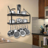 2 Tier Wall Mounted Kitchen Hanging Pot Rack with Hooks