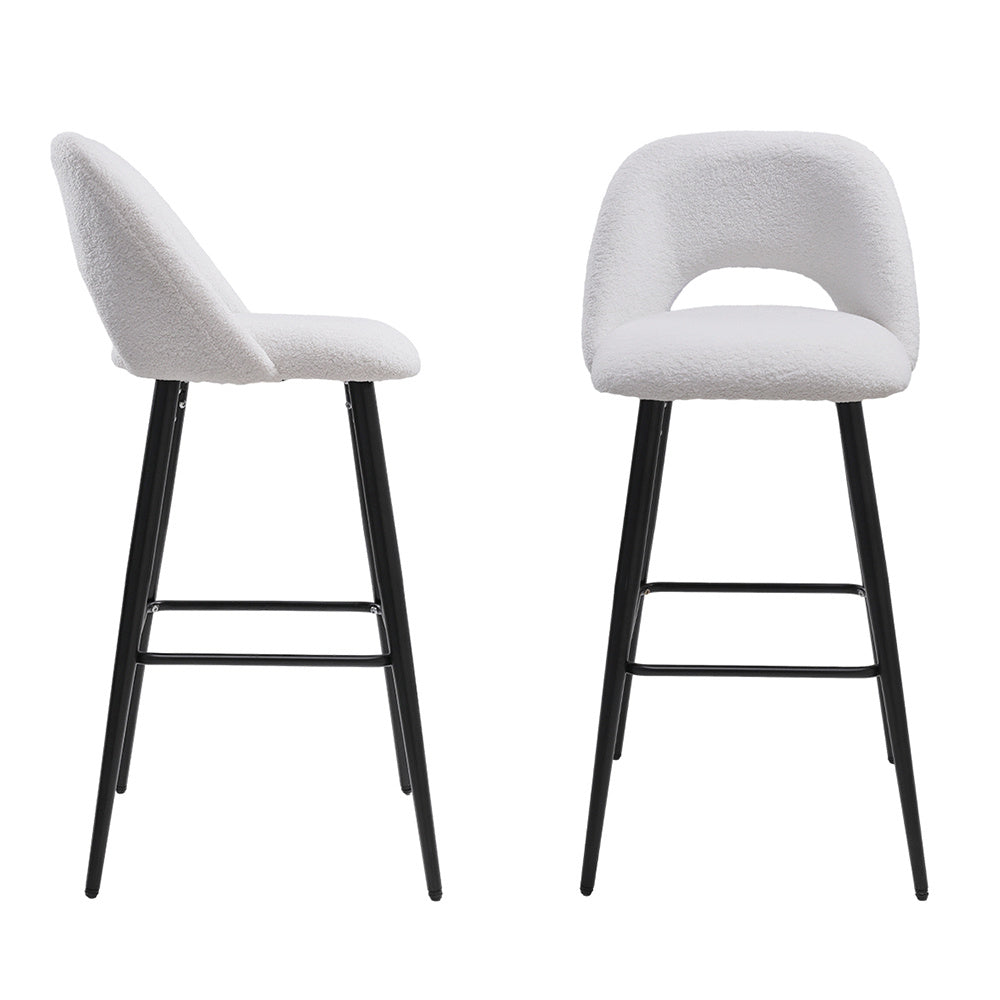 2Pcs Teddy Bear Fur Upholstered Breakfast Bar Stools with Backrest