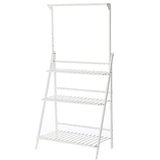 3 Tier Ladder Foldable Plant Stand with Hanging Bar, White