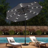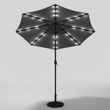 3M Large Garden LED Parasol Outdoor Beach Umbrella with Light Sun Shade Crank Tilt with 14KG Round Base, Dark Grey