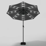 3M Large Garden LED Parasol Outdoor Beach Umbrella with Light Sun Shade Crank Tilt with Square Base, Dark Grey