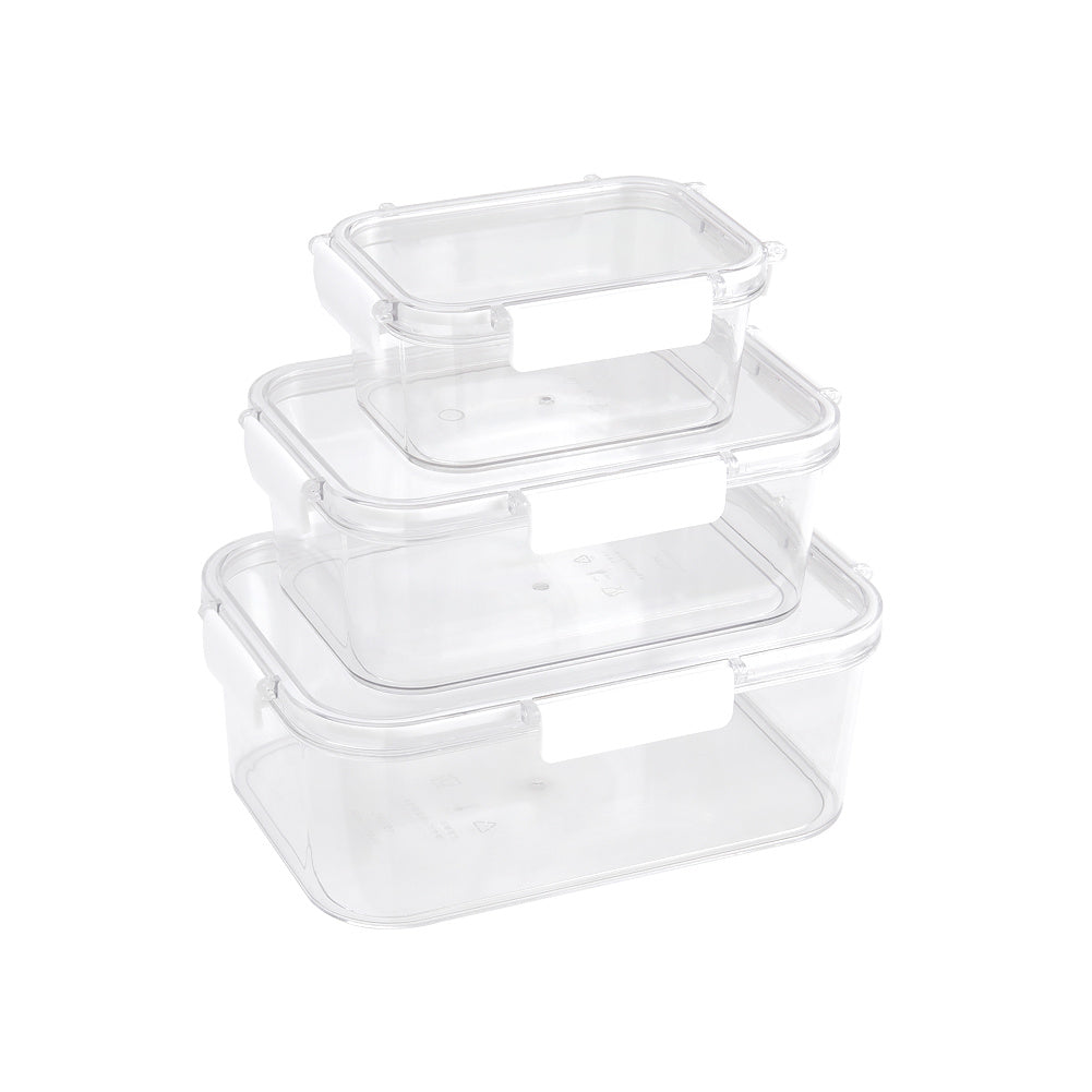 3Pcs Transparent Stackable Bento Lunch Box Refrigerator Storage Box Set