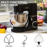 Revolutionize your home cooking experience with this stand mixer. Complete with essential attachments¡ªan 8-quart stainless steel bowl, beater, whisk, and dough hook¡ªit effortlessly handles various recipes, from cakes to bread and whipped cream. The spacious and deep mixing bowl accommodates both large and small batches, ensuring efficient and mess-free preparation. Better still, it has a sleek black glossy finish that seamlessly complements modern kitchens, adding both style and functionality to your everyday bakery.