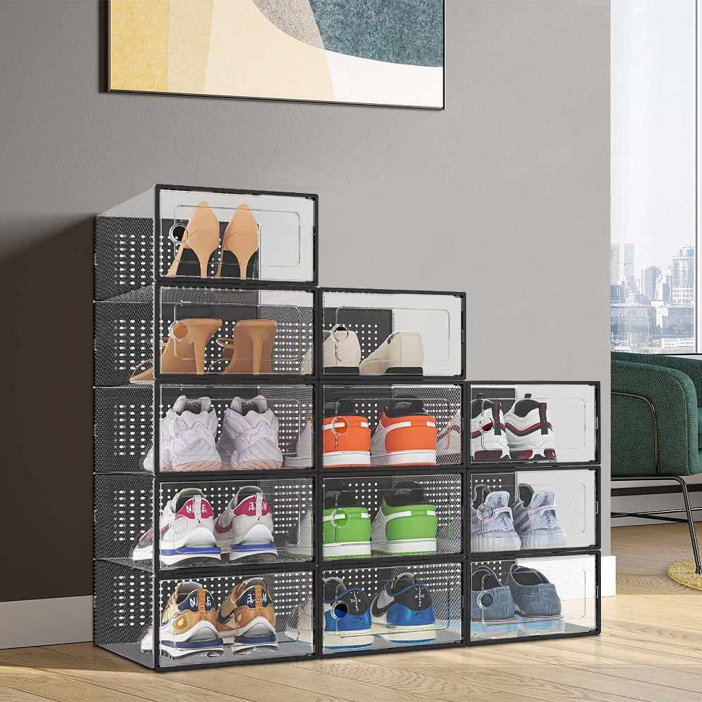 Black 12 Stackable Shoe Storage Box Organiser