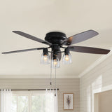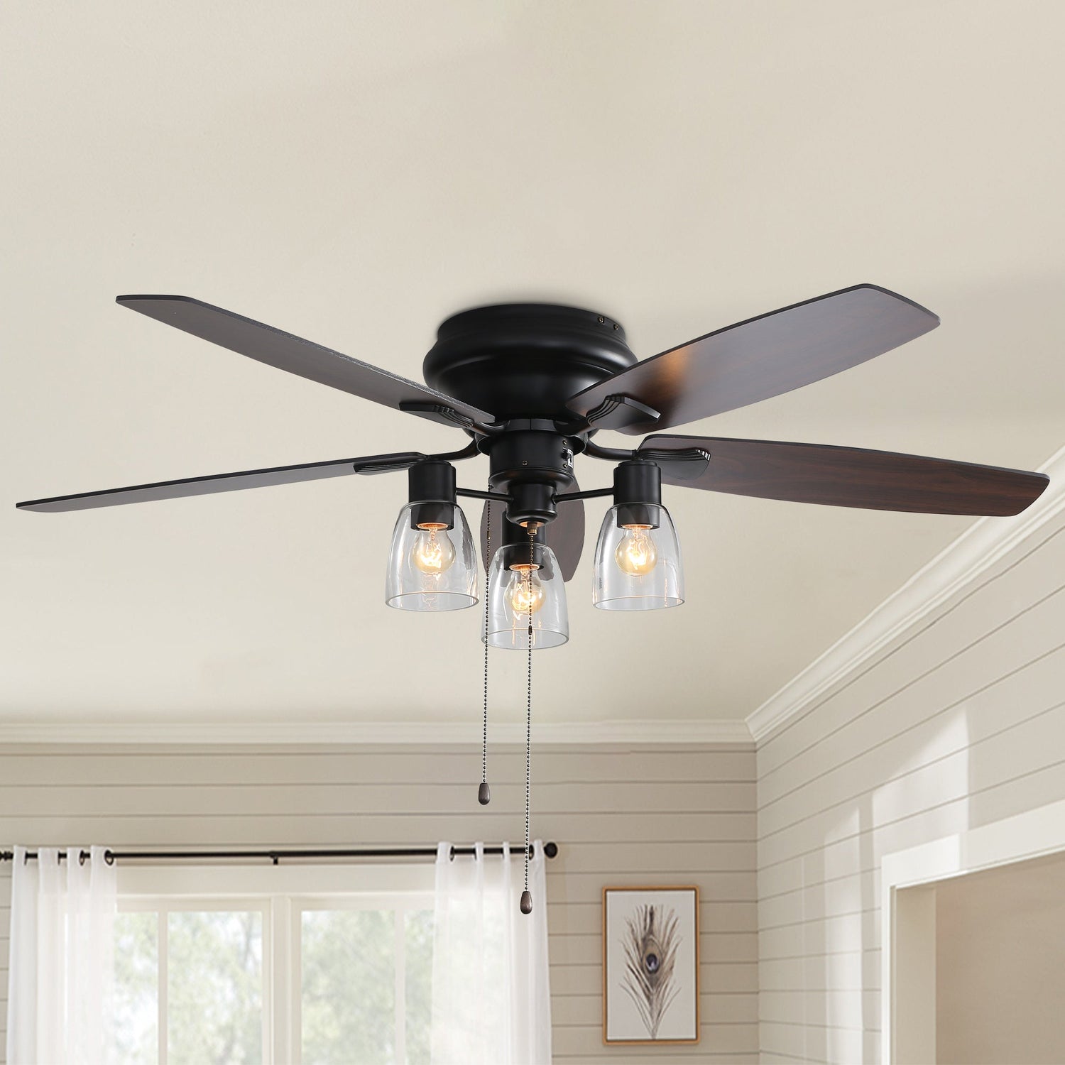 Black 52 Inch Low Profile Ceiling Fan Light with Remote