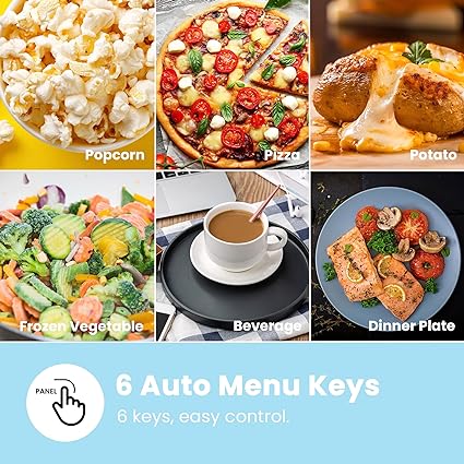 This modern and sleek home microwave oven caters to all your cooking requirements. Its large turntable allows for heating more food at once. The LED digital display features a clock, kitchen timer, and remaining cooking time indicator. With various power levels, this microwave accommodates a wide range of heating tasks, making it easy to heat various foods quickly. Additionally, the quick defrost function comes in handy when you forget to defrost meat in advance.
