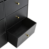 Refresh your home storage with this stylish nine-drawer cabinet, designed to blend practicality with modern UK home aesthetics. Crafted with a sturdy metal frame and non-toxic PVC drawers featuring refined stitched fronts, it adds both texture and visual interest to any space. The elegant two-tone design enhances its contemporary charm, while the nine spacious drawers provide generous, organised storage for clothing, accessories, and household essentials. Perfect for living rooms, bedrooms, or dining areas, this cabinet delivers a versatile storage solution that elevates your décor while keeping your home neat and clutter-free.