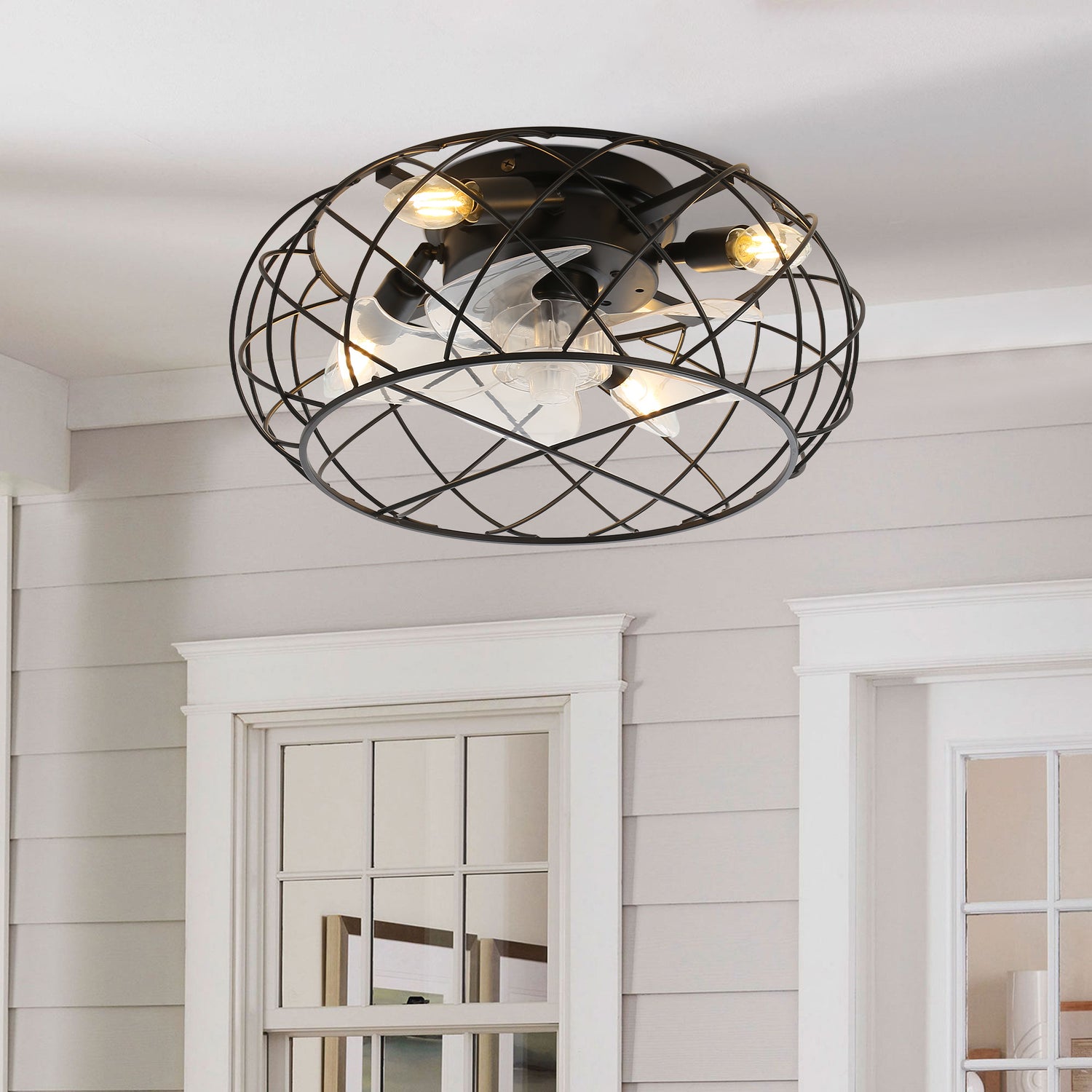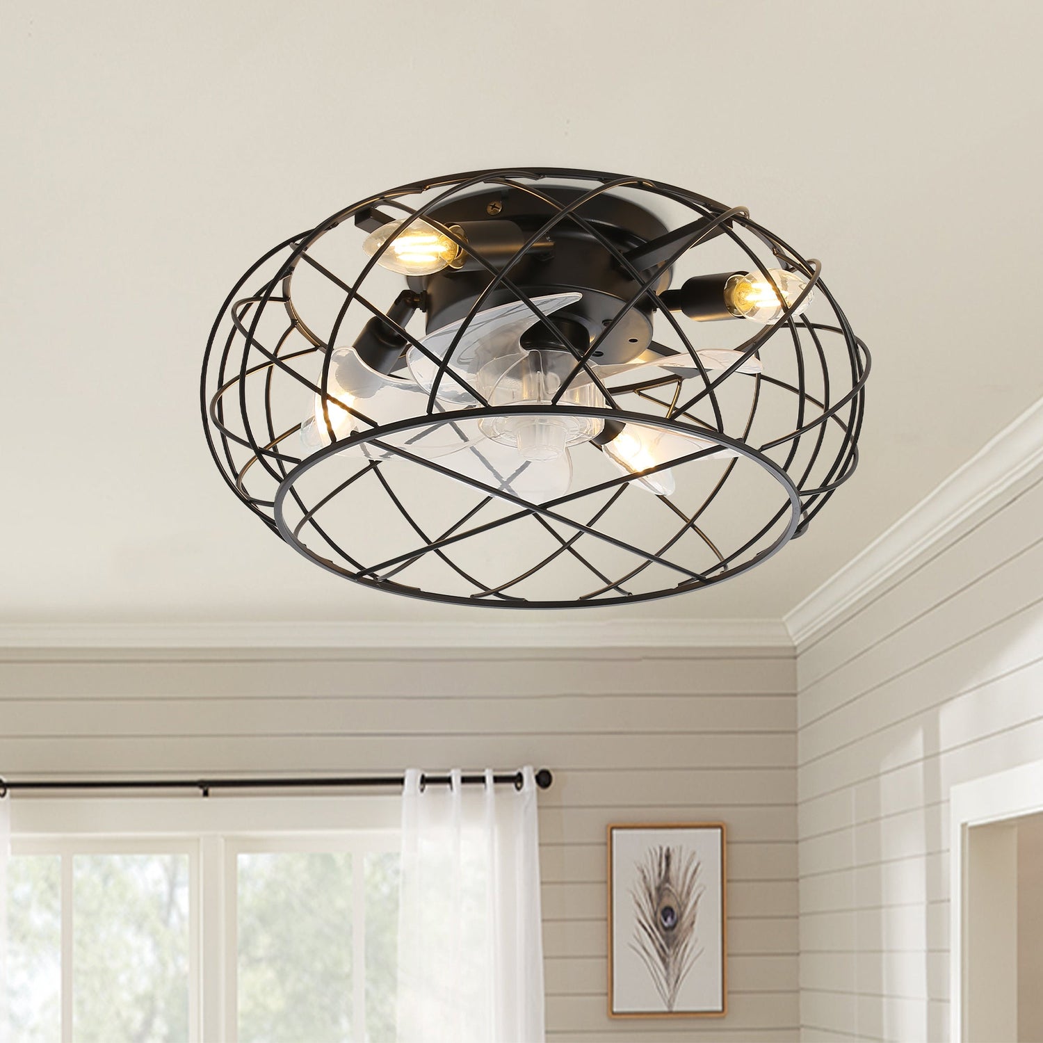 Black Cage Indoor Ceiling Fan Light