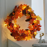 Christmas Halloween Artificial Maple Wreath Rattan with LED Light, Pine Cone 60CM