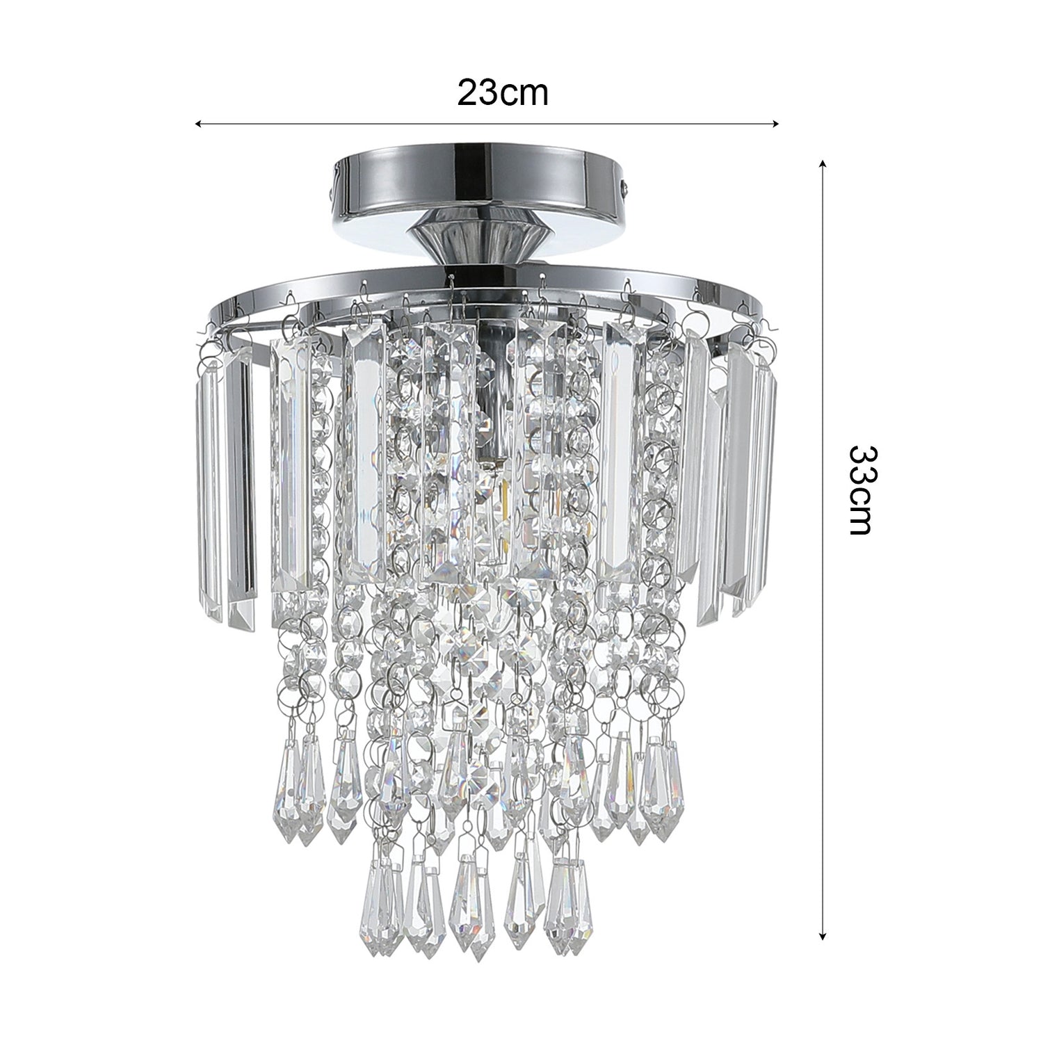 Chrome 23x33cm Living Room Crystal LED Ceiling Light