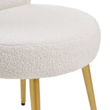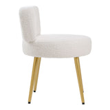 Cream Faux Fur Vanity Stool Chair with Metal Legs