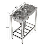 Freestanding Two Compartment Stainless Steel Sink with Shelf