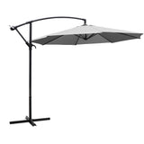 Garden 3M Light Grey Banana Parasol Cantilever Hanging Sun Shade Umbrella Shelter with Cross Base