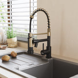 Gold Black Stainless Steel Kitchen Faucet with Pull Down Spring Spout