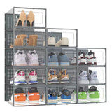 Grey 12 Stackable Shoe Storage Box Organiser