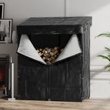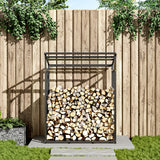 Grey 185cm Garden Metal Tube Firewood Rack with Roof