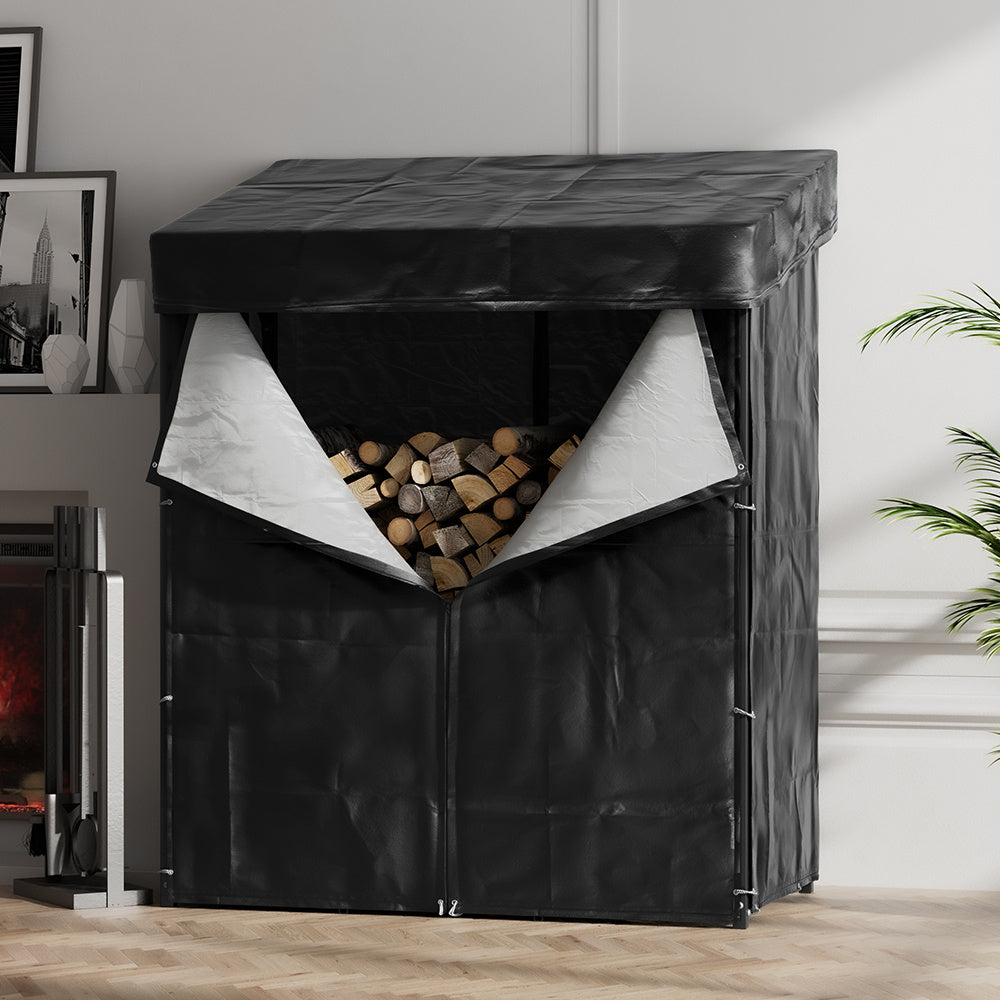Our Firewood Rack turns your scattered logs into an organized pile. Constructed with heavy-duty metal pipes and meticulous welding technology, it ensures optimal weight-bearing capacity. The addition of a roof prevents the wood from snow coverage and rain exposure. This rack effectively keeps the wood dry and allows for proper ventilation, promoting better combustion when used as firewood. When piling up, the natural wood will contrast beautifully with the black finish, creating a warm look for those cold winter months.