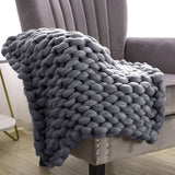 Grey Handwoven Chunky Knit Throw Blanket