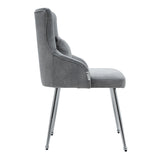 This upholstered dining chair is built to last with the craftsmanship of velvet fabric stretched on a strong solid wood frame. The seat and back are padded with high-density foam for a comfortable feeling. Featuring velvety upholstery in a modern grey hue and sleek metal legs, the chair looks gorgeous along the side of any dining table.