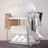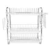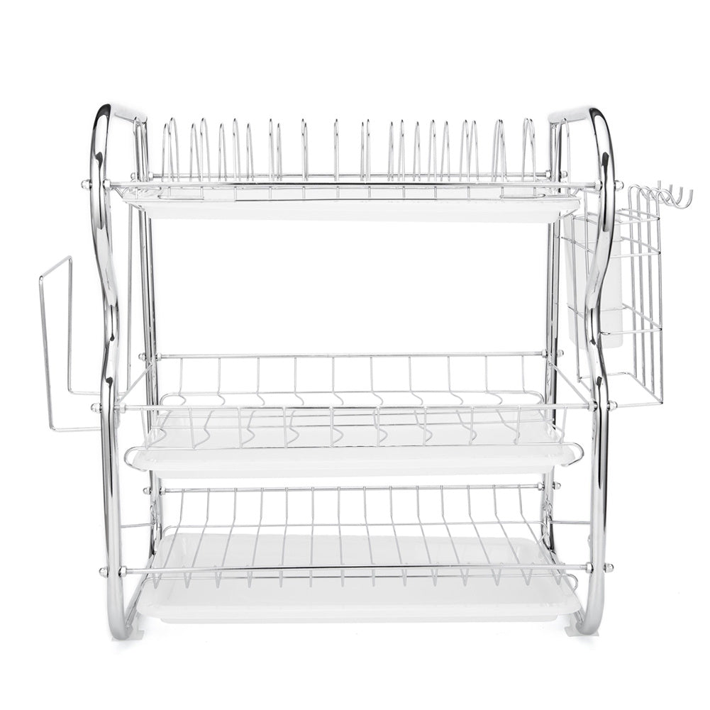 Kitchen Chrome Dish Drainer Cutlery Cup Plates Holder Sink Rack Drip Tray 3 Tier