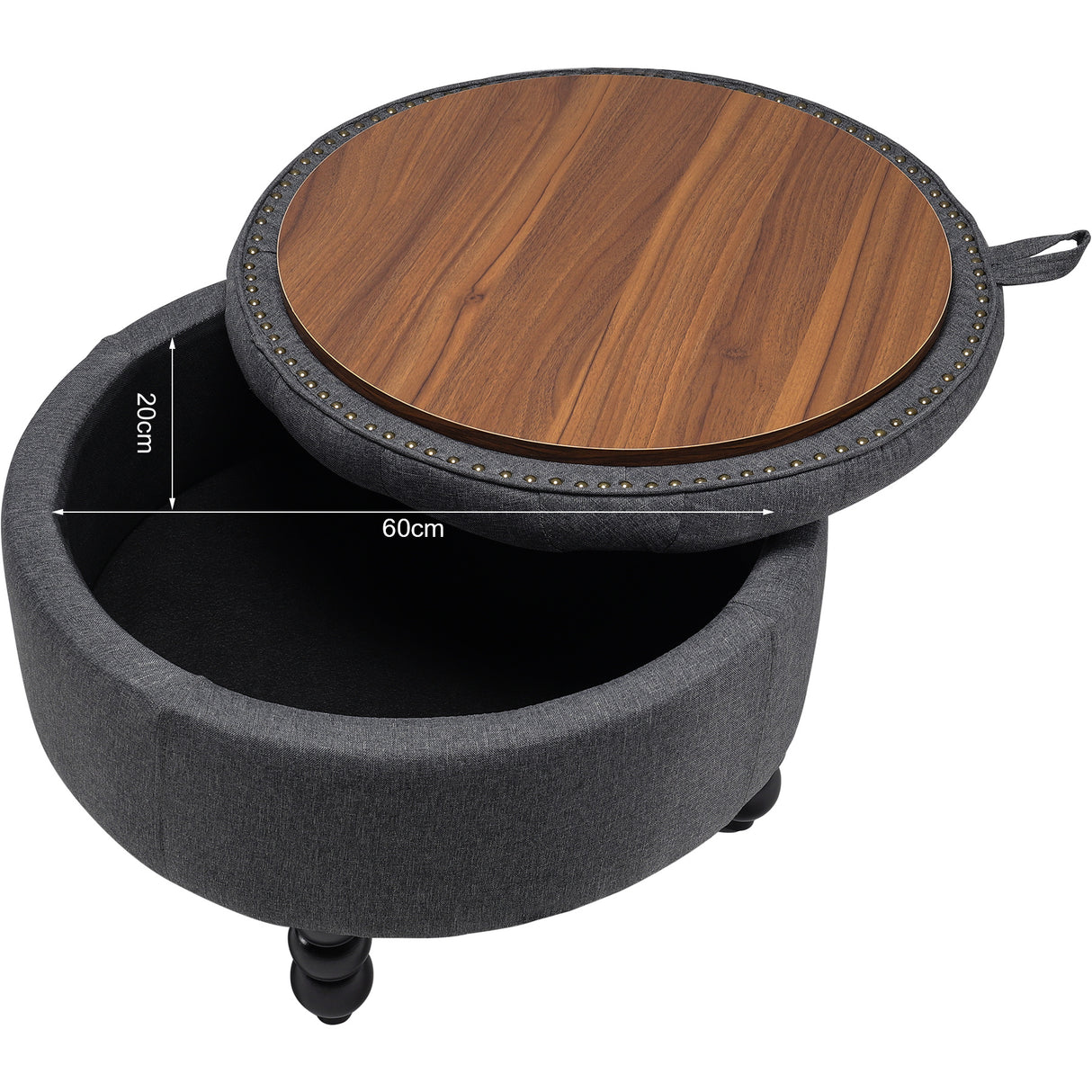 Linen Buttoned Ottoman Storage Footstool , Grey