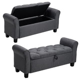 Linen Buttoned Storage Bench with Armrest, Dark Grey