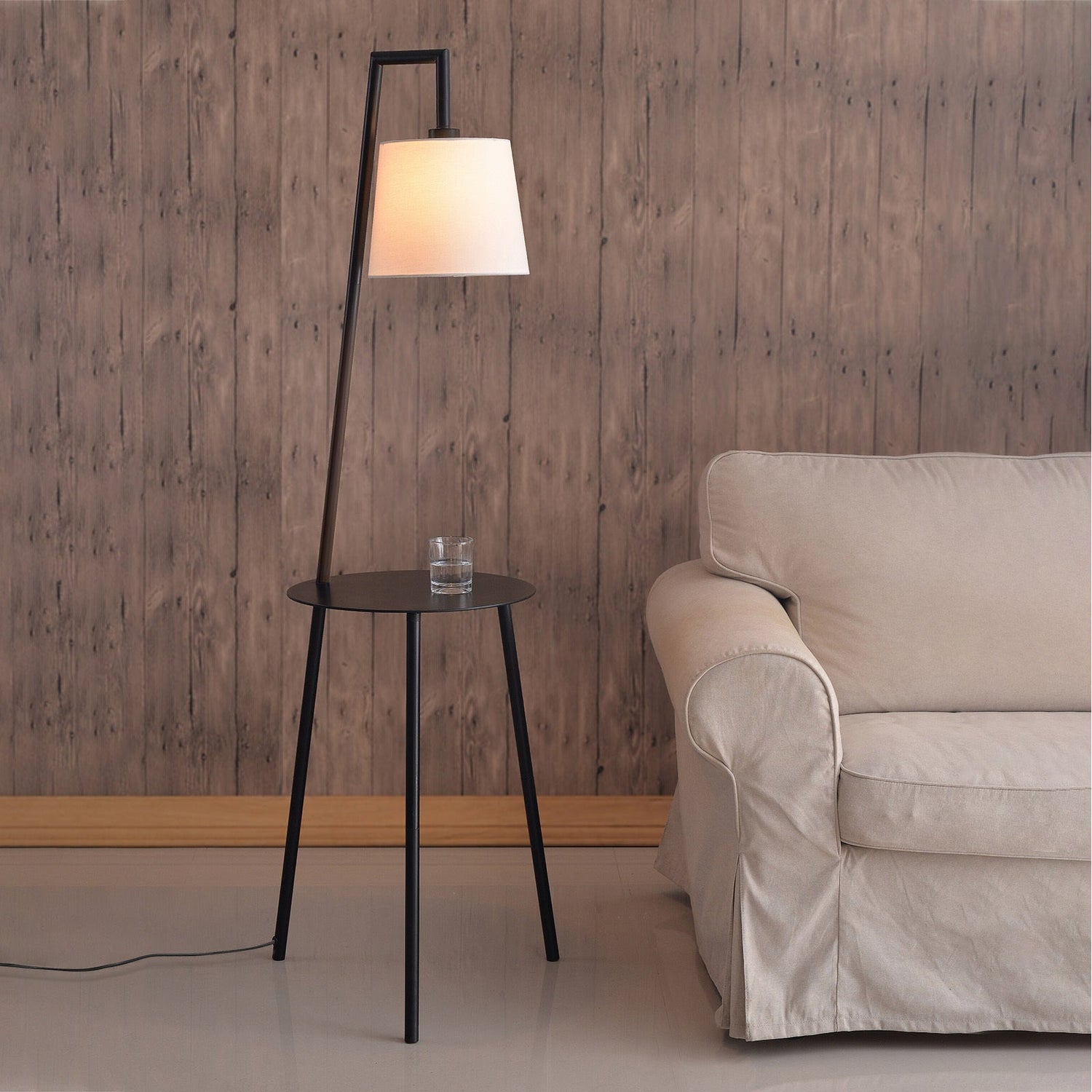 Metal Tray Table Floor Lamp with Linen Lampshade