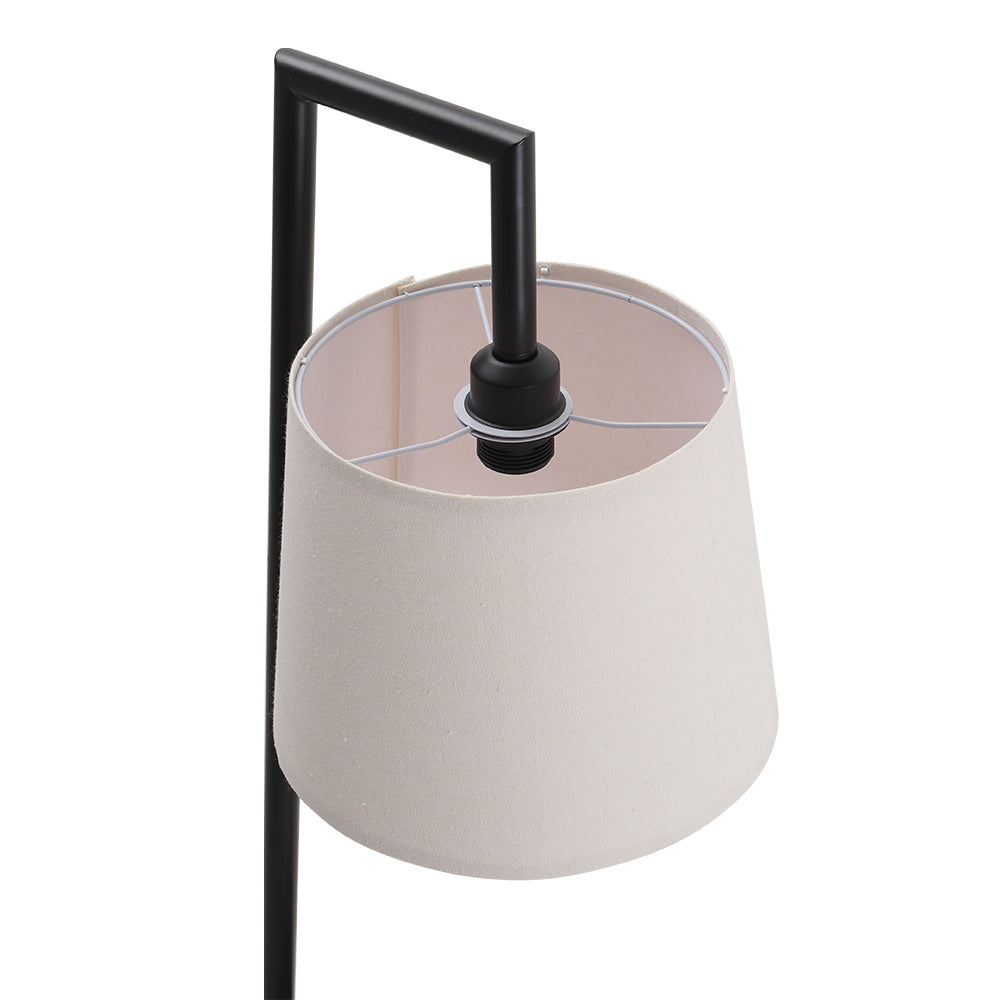 Nordic look is complemented by the sleek black tripod stand and the beige linen