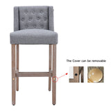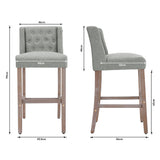 Rustic Set of 2 Bar Stools Linen Tufted with Wood Legs