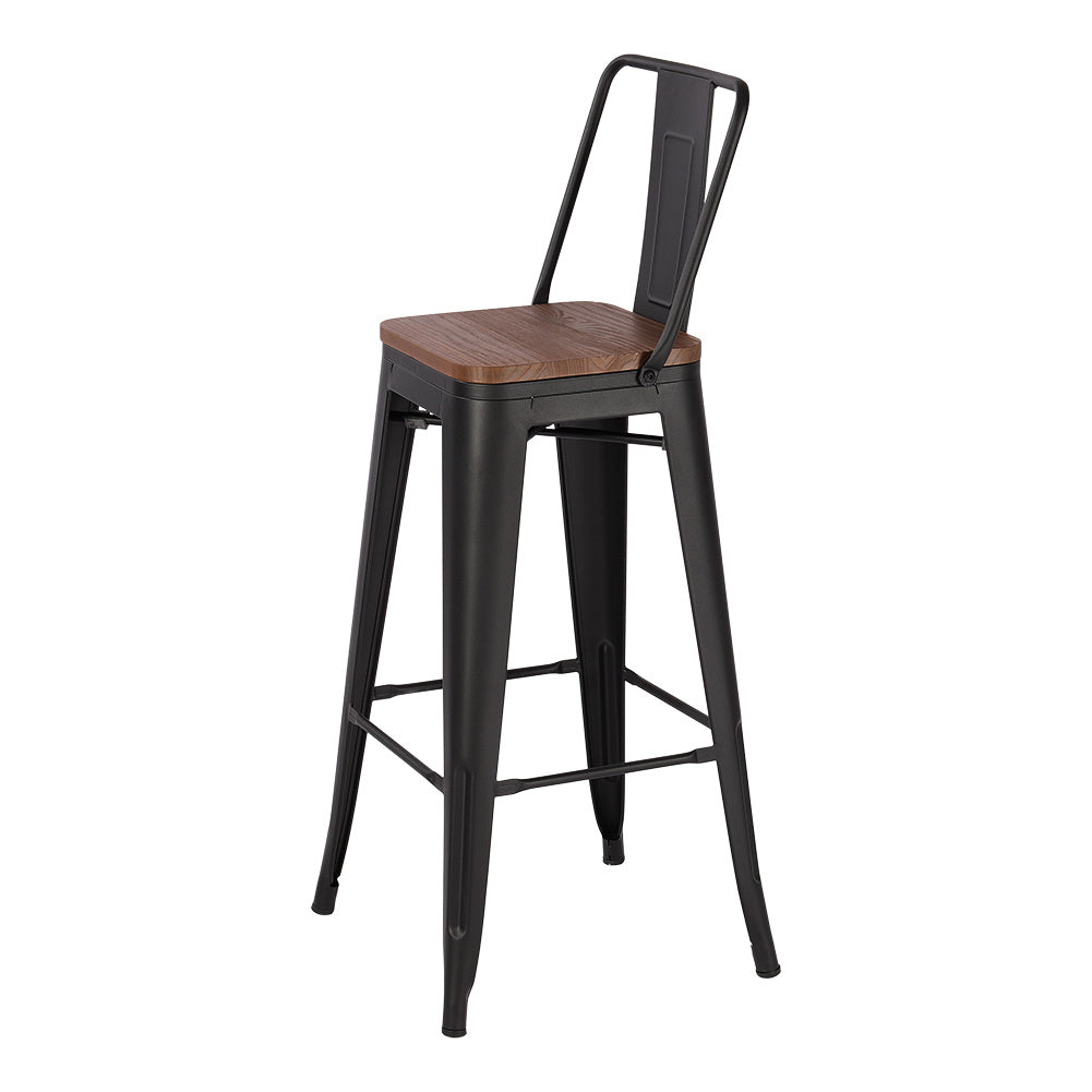 Set of 4 Metal Frame Tolix Industrial Bar Wood Top Chair with Footrest