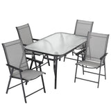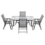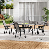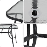 Set of 5 Garden 150CM Ripple Glass Rectangle Umbrella Table and Folding Chairs Set, Black