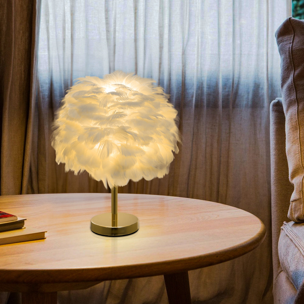 White 38cm Chic Feather Table Lamp is backordered and will ship as soon as it is back in stock.