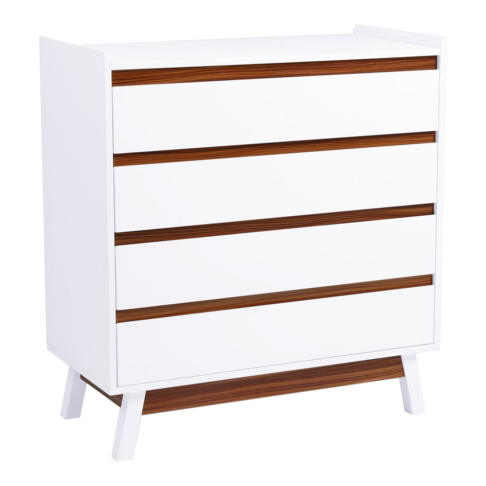 White 4 Drawer Storage Chest with Pine Wood Legs